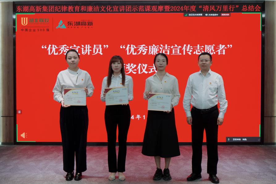 在2024年度“清風(fēng)萬(wàn)里行”總結(jié)表彰環(huán)節(jié),會(huì)議宣讀了《關(guān)于表彰“優(yōu)秀宣講員”“優(yōu)秀廉潔宣傳志愿者”的決定》,并為“優(yōu)秀宣講員”獲獎(jiǎng)?wù)摺ⅰ皟?yōu)秀廉潔宣傳志愿者”獲獎(jiǎng)?wù)叽眍C發(fā)證書(shū)。